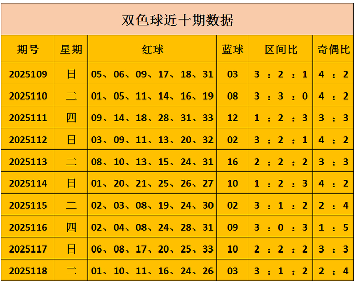 双色球上期开出奖号:01 10 11 16 24 26+03,区间比3:1:2,奇偶2:4。